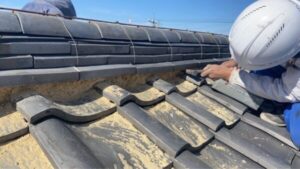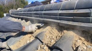 岐阜市にて築50年住宅の屋根修理〈棟瓦漆喰の塗り直し工事〉