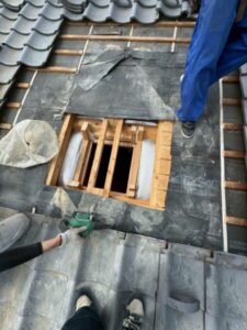 煙突を取り外した後は、開口部がそのままにならないよう、下地の補修と防水処理を丁寧に行っていきます。