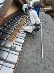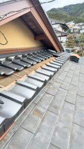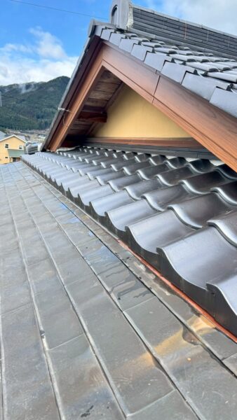 先ほどの板金を施工した上に、瓦を葺き戻し致しました。